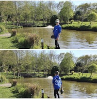 Some big fish sun bathing on the surface. Can you hear them slurping with their mouths?